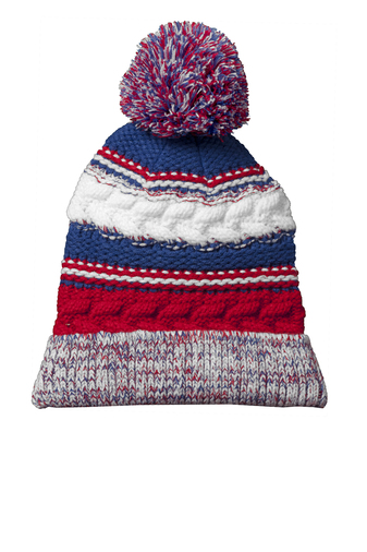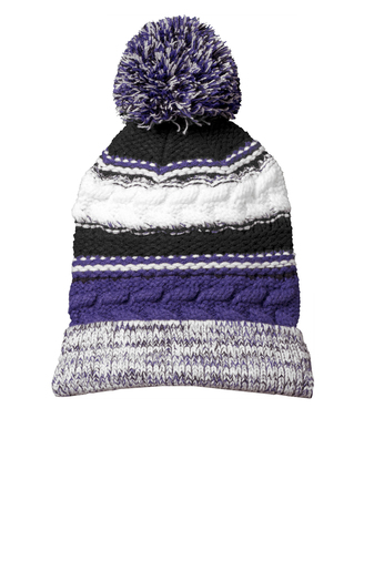 With three team colors and a large pom pom, this chunky-knit beanie will help keep you warm in the stands.